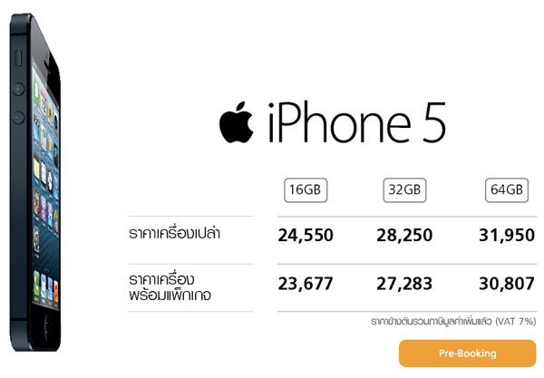 - iPhone 5 32GB เครื่องเปล่า 28,250 บาท เครื่องพร้อมแพ็กเกจ 27,500 บาท