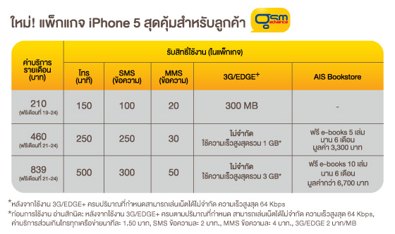 สำหรับโปรโมชั่น iPhone 5 จาก AIS เป็นดังนี้