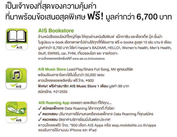 - รายการนี้จัดให้สำหรับลูกค้า AIS ประเภทบุคคลธรรมดา และเป็นการขายเครื่องพร้อมแพ็กเกจแบบรายเดือน