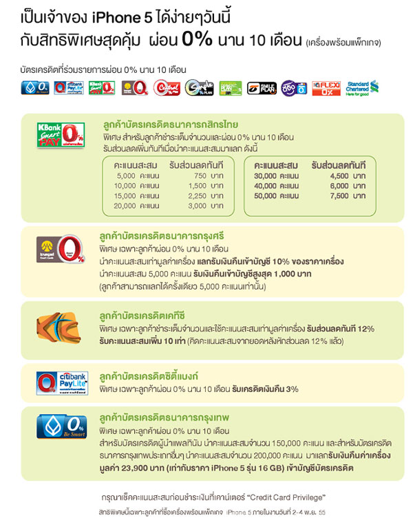 นอกจากนี้ AIS ยังมีข้อเสนอสุดพิเศษ และสิทธิการผ่อน 0% นาน 10 เดือน กับบัตรเครดิตที่ร่วมรายการอีกด้วย ดังนี้