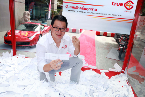 กรุงเทพฯ 17 พฤศจิกายน 2557 ทรูมูฟ เอช ผู้ให้บริการ 4G LTE รายแรกและรายเดียวของไทยที่ใช้งานได้จริง ประกาศรายชื่อผู้โชคดี นายกฤษฏิ์ ทองแดง ได้รับของรางวัลใหญ่สุดจากแคมเปญ เปลี่ยนเลย... 4G Advance Forward จากทรูมูฟ เอช ซูเปอร์คาร์ Ferrari 458 Italia มูลค่า 27 ล้านบาทแทนสัญลักษณ์ความเร็วแรงของ 4G จากทรูมูฟ เอช และของรางวัลอื่น ๆ ได้แก่ ซูเปอร์ไบค์ Ducati Monster 796 ABS 1 รางวัล แพ็กเกจท่องเที่ยว Ferrari Theme Park ณ เมืองอาบูดาบี 10 รางวัล TrueVisions Gold HD Package นาน 12 เดือน จำนวน 5 รางวัล และรางวัลบัตรเล่นกีฬาโต้คลื่นที่ Flow House Bangkok จำนวน 50 รางวัล