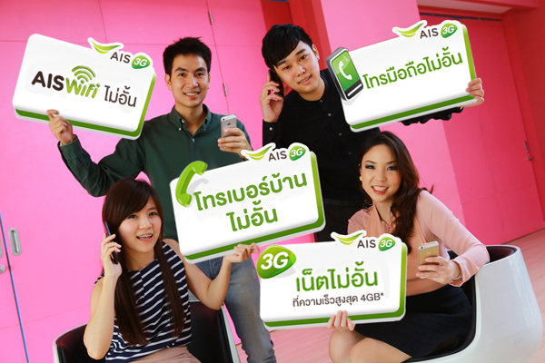 เอไอเอส 3G 2100 จัดเต็มแพ็กเกจ บุฟเฟ่ต์ไม่อั้น x 4 ทั้งโทรมือถือ, โทรเบอร์บ้าน, เล่นเน็ต 3G และ WiFi แบบไม่จำกัดสุดคุ้ม...เฉพาะลูกค้าเอไอเอส 3G รายเดือน