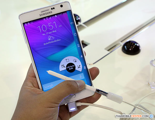 สิ้นสุดการรอคอยแล้ว สำหรับ Samsung Galaxy Note Edge ที่ได้ฤกษ์วางจำหน่ายภายในงาน Thailand Mobile Expo 2015 ซึ่งจัดขึ้นระหว่างวันที่ 12-15 กุมภาพันธ์ 2558 ที่ผ่านมา โดย Samsung Galaxy Note Edge รุ่นนี้ มีคุณสมบัติระดับสูงที่ครบเครื่องไม่แพ้ Samsung Galaxy Note 4 แถมโดยเด่นกว่าขึ้นไปอีกขึ้นด้วยหน้าจอแสดงผลแบบโค้งงอนั่นเอง และผู้ที่มาร่วมงาน Thailand Mobile Expo 2015 ก็ให้ความสนใจในตัว Samsung Galaxy Note Edge กันอย่างเนืองแน่น เรียกได้ว่า เป็นหนึ่งในไฮไลท์ของงานเลยก็ว่าได้ ซึ่งทีมงานไทยโมบายเซ็นเตอร์ก็ไม่รอช้า รีบไปเก็บภาพ และรวบรวมข้อมูลมาพรีวิวให้มิตรรักแฟนเว็บไซต์ได้รับชมกันครับ