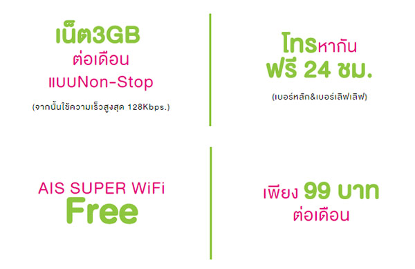 AIS แพ็กเกจเลิฟเลิฟ แพ็กเกจสุดคุ้มสำหรับคนมีคู่! โทรหากันฟรีตลอด 24 ชั่วโมง พร้อมเล่นอินเทอร์เน็ตแบบ Non-Stop นานสูงสุด 1 ปีเต็ม เพียง 99 บาท/เดือน!