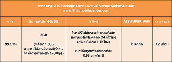 รายละเอียดเพิ่มเติม : AIS Package Love Love