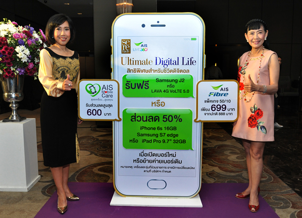- เลือกรับส่วนลด 50% สำหรับ iPhone 6s 16GB, Samsung S7 edge หรือ iPad Pro 9.7” 32GB หรือรับฟรี Samsung J2 หรือ LAVA 4G VoLTE 5.0 เมื่อเปิดเบอร์ใหม่ หรือย้ายค่ายเบอร์เดิม