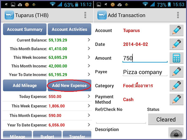 เพื่อให้ Expense Manager ทำงานของมันได้ เราต้องป้อนรายละเอียดของทุกรายรับ/รายจ่ายที่เกิดขึ้นจริงให้มันรับรู้
