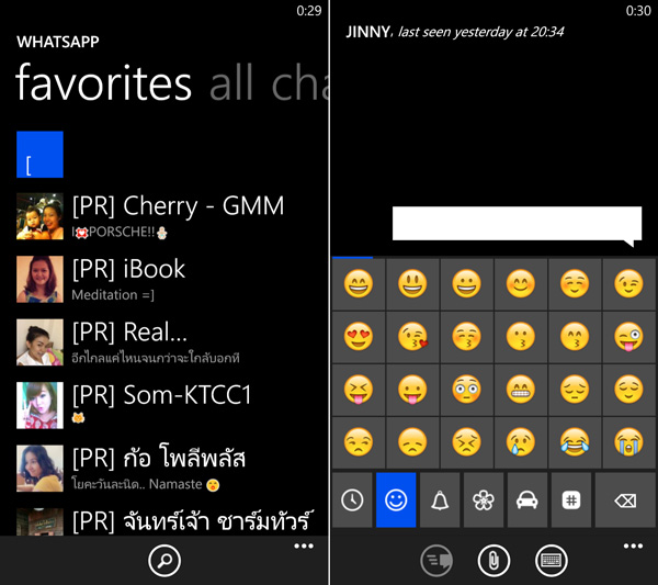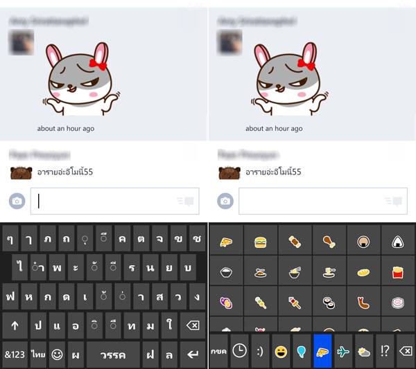 ในส่วนของ Facebook Messenger นั้น รองรับภาษาไทยอย่างเต็มรูปแบบ นอกจากนี้ ยังมีอีโมติคอนให้เลือกใช้กันอย่างมากมาย แต่น่าเสียดายที่ตอนนี้ Facebook Messenger for Windows Phone นั้น ยังไม่รองรับ สติ๊กเกอร์ แบบที่ใช้กันบน iOS, Android หรือ Facebook for Desktop ครับ