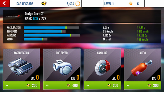 นอกจากนี้ ยังสามารถแข่งกับเพื่อนๆ ของคุณ พร้อมติดตามการแข่งขัน และทำเวลาให้ดีกว่าในทัวร์นาเมนต์ประจำสัปดาห์ได้ และที่สำคัญ คือ คุณสามารถอัพเกรด และแต่งรถยนต์ของคุณได้ตามใจชอบ ซึ่งสิ่งต่างๆ ภายในตัวเกม อาทิ สิ่งก่อสร้าง และรถยนต์ ได้รับการสร้างสรรค์ในรูปแบบกราฟฟิคสามมิติ เพื่อให้ดูสวยงาม และสมจริง แบบฉบับการ์ตูนแอนิเมชั่นมากที่สุด