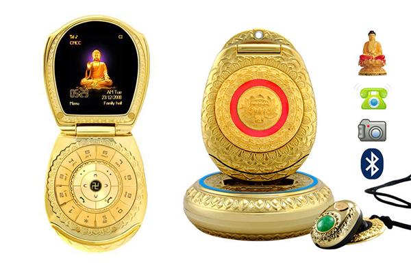 C91 Golden-Buddha Phone คือมือถือที่เกิดมาสำหรับสายบุญโดยเฉพาะ ด้วยตัวเครื่องสีทองอร่าม สลักลวดลายวิจิตรสวยงามเปี่ยมด้วยความสิริมงคล ดีไซน์ตลับแป้งโค้งมนเข้ามือ พกพาไปได้ทุกที่ไม่ว่าคุณจะอยู่ที่บ้าน อยู่ที่วัด หรือปฏิบัติธรรมในป่า ตัวเครื่องรองรับ 2 ซิมการ์ด พร้อมจอสีขนาด 2 นิ้ว และกล้องความละเอียด 1.3MP สามารถเล่นบทสวดมนต์ที่คุณชื่นชอบได้ไม่ว่าจะเป็นไฟล์ MP3 หรือ MP4 นอกจากนี้ยังมีวิทยุ FM ไว้ฝังธรรมะตอนเช้า อีกทั้งยังรองรับระบบ GPRS และ Bluetooth แม้สเปกจะไม่แรง แต่ความศักดิ์สิทธิ์กินขาดแน่นอน