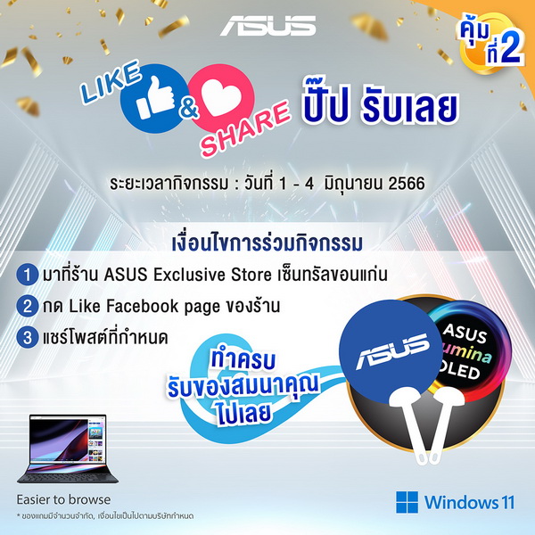 โปรโมชั่นเฉพาะร้าน ASUS Exclusive Store - เซ็นทรัลขอนแก่น ชั้น 3 เท่านั้น
