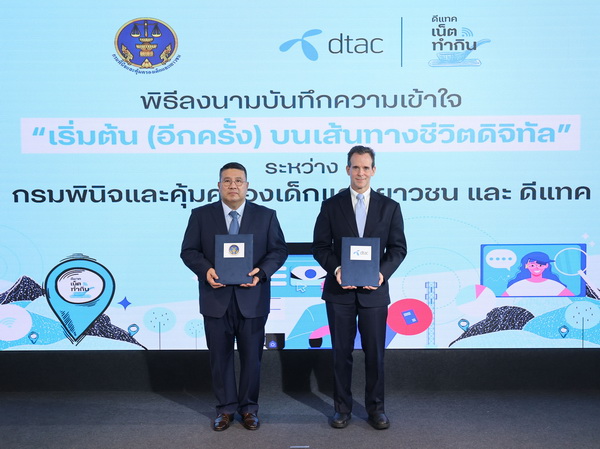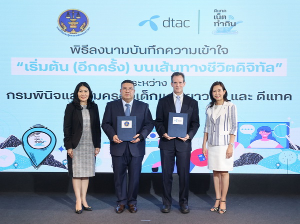 24 พฤศจิกายน 2565 – กรมพินิจและคุ้มครองเด็กและเยาวชน และดีแทค ร่วมลงนามในบันทึกความเข้าใจว่าด้วยการพัฒนาทักษะดิจิทัลเพื่อโอกาสในการทำอาชีพและทักษะการรับมือกับความเสี่ยงบนโลกออนไลน์ สำหรับเยาวชนในกระบวนการยุติธรรมทางอาญา ที่อยู่ในระหว่างการเตรียมความพร้อมก่อนปล่อยตัว ให้ได้เรียนรู้และส่งเสริมทัศนคติที่เป็นบวกต่อการใช้เทคโนโลยีดิจิทัลผ่านทั้งแพลตฟอร์ม e-Learning และภาคปฏิบัติ พร้อมกันนี้ ดีแทคเน็ตทำกินได้พัฒนาหลักสูตร “ดีแทค เน็ตทำกิน” บนแพลตฟอร์มออนไลน์ ร่วมกับสถาบันคุณวุฒิวิชาชีพ (องค์การมหาชน) ทั้งนี้ เยาวชนที่ได้รับการอบรม จะสามารถใช้เทียบสมรรถนะการเรียนรู้ตามมาตรฐาน เพื่อศึกษาต่อยอดหรือประกอบอาชีพในอนาคต