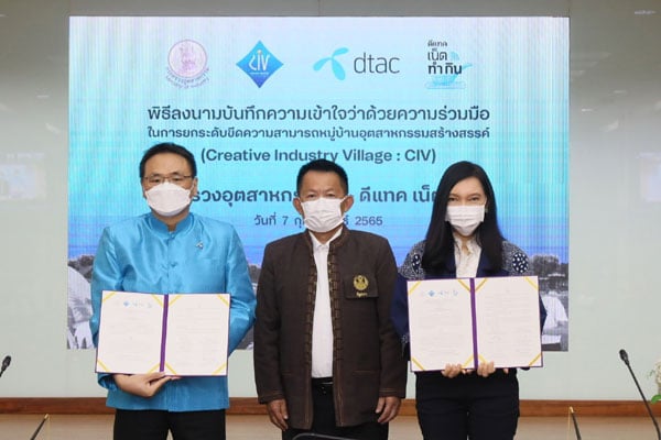 7 กุมภาพันธ์ 2565 – กระทรวงอุตสาหกรรมและดีแทคร่วมลงนามบันทึกความเข้าใจว่าด้วยความร่วมมือในการยกระดับขีดความสามารถหมู่บ้านอุตสาหกรรมสร้างสรรค์ (Creative Industry Village: CIV) เพื่อฟื้นฟูและยกระดับเศรษฐกิจชุมชน ดีแทคเน็ตทำกินร่วมพัฒนาศักยภาพผู้ประกอบการในชุมชน นำเทคโนโลยีดิจิทัลมาประยุกต์ใช้ในการจัดการธุรกิจสินค้าชุมชนที่มากด้วยอัตลักษณ์ให้ 152 หมู่บ้านจาก 76 จังหวัด เพิ่มมูลค่าทางเศรษฐกิจให้อุตสาหกรรมท่องเที่ยวเชิงวัฒนธรรมผ่านวิถีความเป็นไทย ต่อยอดด้วยนวัตกรรมสมัยใหม่เพื่อความยั่งยืน