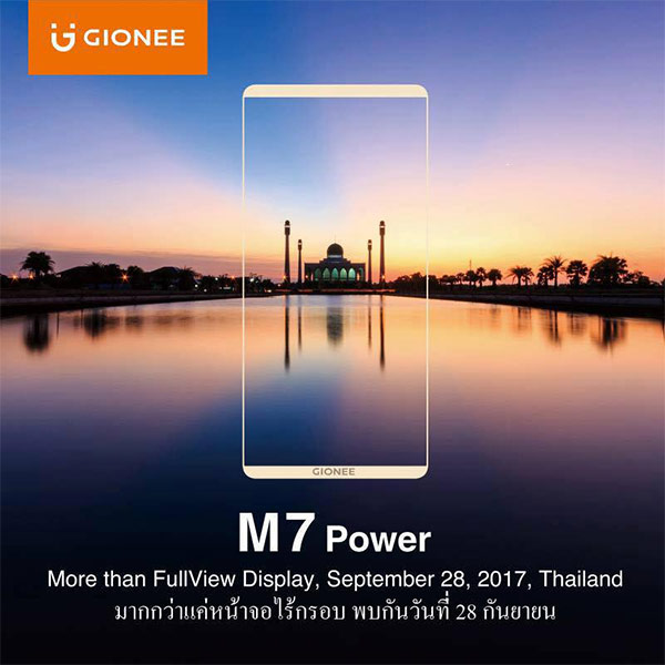 Gionee M7 Power เตรียมเปิดตัวในไทย 28 กันยายนนี้ พร้อมดีไซน์จอไร้ขอบสุดพรีเมียม คาดจัดเต็มด้วยชิปเซ็ต Helio P30, RAM 4GB และกล้อง 16 ล้านพิกเซล บน Android Nougat!