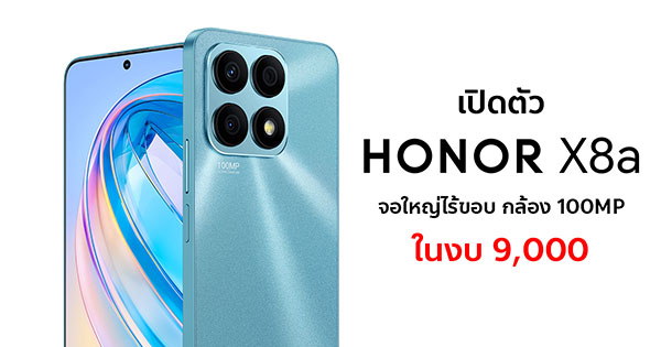 HONOR เปิดตัวสมาร์ทโฟนระดับเริ่มต้นรุ่นใหม่ HONOR X8a ชูจุดเด่นด้วยกล้อง 100MP และจอใหญ่ 6.7 นิ้วขอบบางเฉียบ ในราคาเริ่มต้นราว 9,000 บาท