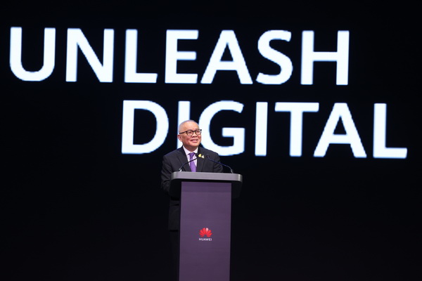 นายเคน หู ประธานกรรมการบริหารหมุนเวียนตามวาระของหัวเว่ย กล่าวปาฐกถาพิเศษเปิดงานโดยเน้นย้ำบทบาทสำคัญ 3 ประการของอีโคซิสเต็มด้านไอซีทีในการช่วยขจัดอุปสรรคระหว่างการเปลี่ยนผ่านสู่ยุคดิจิทัล