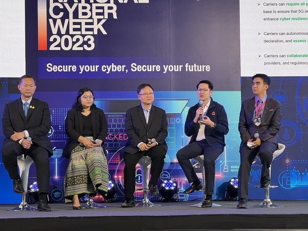 กรุงเทพฯ 20 กุมภาพันธ์ พ.ศ. 2566 – สำนักงานคณะกรรมการการรักษาความมั่นคงปลอดภัยไซเบอร์แห่งชาติ (สกมช.) จัดเสวนากลุ่มย่อย ภายใต้หัวข้อ “การรักษาความมั่นคงปลอดภัยทางไซเบอร์ด้านการเงินธนาคาร ให้โครงข่ายสัญญาณโทรคมนาคมทั่วไทย กับความสำคัญต่อภาคประชาชนและธุรกิจ” ในงานนิทรรศการสัปดาห์วิชาการด้านความมั่นคงปลอดภัยไซเบอร์ปี 2566 (Thailand National Cyber Week 2023) โดยมี พล.อ.ต. อมร ชมเชย เลขาธิการ สกมช. น.ส.กนกอร ฉวาง ผู้อำนวยการส่วนการกำกับดูแลกิจการโทรคมนาคม สำนักงานคณะกรรมการกิจการกระจายเสียง กิจการโทรทัศน์และกิจการโทรคมนาคมแห่งชาติ (กสทช.) นายสุรชัย ฉัตรเฉลิมพันธุ์ เจ้าหน้าที่ฝ่ายความปลอดภัยทางไซเบอร์และความเป็นส่วนตัวของบริษัท หัวเว่ย เทคโนโลยี่ (ประเทศไทย) จำกัด และนายกิตติพงษ์ ธีระเรืองไชยศรี Cyber Expert/Information Security and Data Management True Corporation ร่วมวงเสวนา