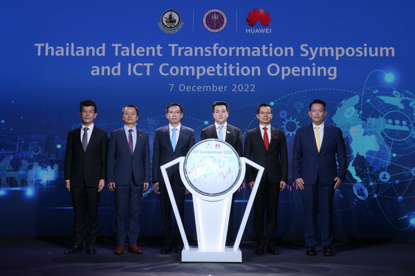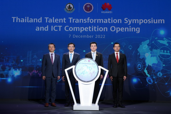 กรุงเทพฯ, 7 ธันวาคม 2565 – บริษัท หัวเว่ย เทคโนโลยี่ (ประเทศไทย) จำกัด ประกาศความร่วมมือกับกระทรวงดิจิทัลเพื่อเศรษฐกิจและสังคม กระทรวงการอุดมศึกษา วิทยาศาสตร์ วิจัยและนวัตกรรม (อว.) สถาบันอุดมศึกษาและบรรดาพันธมิตรจากภาคอุตสาหกรรมในประเทศ ร่วมหารือเพื่อนำแนวทางมาพัฒนาบุคลากรไอซีที ต่อยอดสู่แผนแม่บทประเทศ ภายในงาน Thailand Talent Transformation Symposium พร้อมเปิดตัวโครงการบ่มเพาะด้านดิจิทัลที่หลากหลายและการแข่งขันสำหรับนักศึกษามหาวิทยาลัยกว่า 200 คน ใน ‘ICT Competition 2022’ เพื่อยกระดับอีโคซิสเต็มด้านบุคลากรดิจิทัลในประเทศไทย