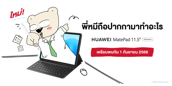 แท็บเล็ตสายครีเอทีฟ HUAWEI MatePad 11.5 รุ่น LTE Version ร่วมกับเพจ คนอะไรเป็นแฟนหมี สร้างสรรค์ผลงานด้วยฟีเจอร์อัจฉริยะที่ช่วยปลดล็อกจินตนาการให้ง่ายขึ้นในพริบตา เตรียมวางจำหน่ายพร้อมกัน 1 กันยายนนี