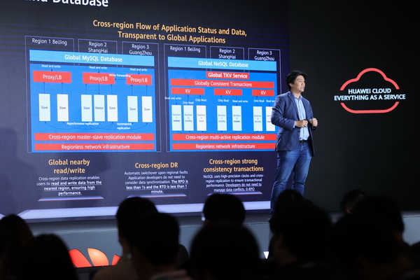 - สถาปัตยกรรมแบบไร้ขอบเขต (Regionless Architecture) ฟีเจอร์ที่จะทำให้ทุกคนสามารถเข้าถึงและใช้บริการเทคโนโลยีคลาวด์ได้แม้จะไม่ใช่ผู้เชี่ยวชาญด้านเทคโนโลยี อีกทั้งยังสามารถใช้บริการคลาวด์ได้จากพื้นที่ทั้งภายในประเทศไทยหรือต่างประเทศ โดยเราเรียกเทคโนโลยีคลาวด์นี้ว่า Global Cloud Resource Orchestration & Scheduling (GOS) ซึ่งจะช่วยสร้างประสบการณ์การใช้งานที่ล้ำสมัยกว่าเดิมและมีประสิทธิภาพสูงขึ้น หากองค์กรต้องการช่วยอนุรักษ์สิ่งแวดล้อมหรือเน้นเรื่องความยั่งยืน (Go Green) หัวเว่ยก็สามารถช่วยกำหนดได้ว่าเราควรจะใช้เทคโนโลยีหรือวิธีการใดที่จะมาช่วยลดผลกระทบกับทรัพยากรได้อย่างมีประสิทธิภาพสูงสุด ลดต้นทุนค่าใช้จ่ายเรื่องโครงข่าย และยังช่วยจัดระเบียบศูนย์ข้อมูล (Data Center) ให้ลูกค้าสามารถปรับเปลี่ยนหรือโยกย้ายได้ตามต้องการ ในส่วนของแอปพลิเคชัน หัวเว่ยยังมีฟีเจอร์ Ubiquitous Cloud Native Service (UCS) ที่จะช่วยจัดการระบบคลาวด์ทุกรูปแบบ ไม่ว่าจะเป็นคลาวด์สาธารณะ (Public Cloud) คลาวด์ส่วนตัว (Private Cloud) หรือไฮบริดคลาวด์ (Hybrid Cloud) โดยมีจุดเด่นในเรื่องที่สามารถเคลื่อนย้ายข้อมูลไปยังภูมิภาคต่าง ๆ ทั่วโลกได้โดยใช้เวลาไม่ถึงนาที มอบอิสระในการกระจายบริการไปยังประเทศต่าง ๆ ทำให้ลูกค้าสามารถเข้าถึงข้อมูลได้อย่างรวดเร็วจากที่ไหนก็ได้ อีกทั้งยังมีค่าความหน่วง (Latency) ที่ต่ำอีกด้วย