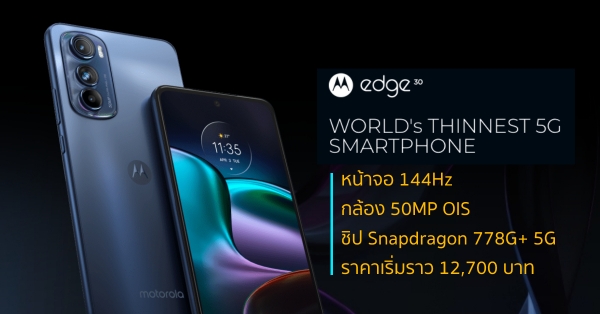 เปิดตัว Motorola edge 30 ชูจุดเด่นจอ 144Hz, ชิป Snapdragon 778G+ 5G, กล้อง 50MP OIS และชาร์จไว 33W ในราคาเริ่มราว 12,700 บาท