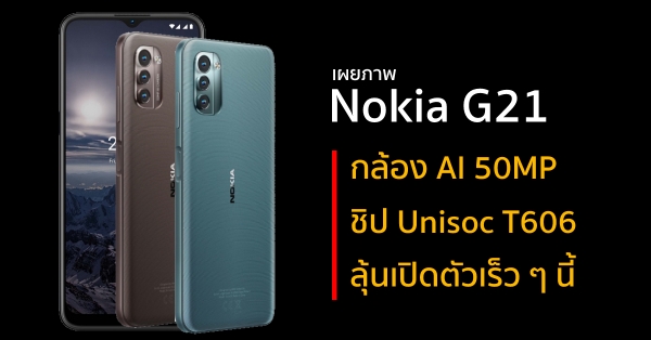Nokia G21 เผยภาพเรนเดอร์ มาพร้อมจอหยดน้ำ, กล้อง AI 50MP และชิป Unisoc T606 ลุ้นเปิดตัวเร็ว ๆ นี้