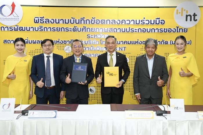 บริษัท โทรคมนาคมแห่งชาติ จำกัด (มหาชน) หรือ NT ลงนามบันทึกข้อตกลงความร่วมมือ ว่าด้วยการพัฒนาบริการยกระดับศักยภาพสถานประกอบการของไทย กับ สถาบันเพิ่มผลผลิตแห่งชาติ เพื่อผนึกกำลังในการส่งเสริมสนับสนุนการยกระดับทักษะด้านเทคโนโลยีดิจิทัลให้แก่บุคลากรในภาคส่วนต่าง ๆ ให้มีความพร้อมทางด้านดิจิทัล สามารถเป็นกำลังหลักในการเปลี่ยนผ่านองค์กรไปสู่ดิจิทัลได้อย่างยั่งยืน โดย พันเอก สรรพชัยย์ หุวะนันทน์ กรรมการผู้จัดการใหญ่ บริษัท โทรคมนาคมแห่งชาติ จำกัด (มหาชน) และนายสุรเชษฎ์ พลวณิช รักษาการผู้อำนวยการสถาบันเพิ่มผลผลิตแห่งชาติ ร่วมลงนาม โดยมีวัตถุประสงค์เพื่อยกระดับบุคลากรและผู้ประกอบการให้มีความรู้ ทักษะ และสมรรถนะที่สอดคล้องกับสถานการณ์ปัจจุบัน ด้วยการผสานจุดเด่นและความเชี่ยวชาญของทั้งสองหน่วยงานและสร้างโอกาสทางธุรกิจผ่านการดำเนินกิจกรรมการตลาดร่วมกัน ณ ห้องประชุม 1 ชั้น 3 อาคารกาญจนาภิเษก สถาบันวิชาการ อำเภอเมืองนนทบุรี จังหวัดนนทบุรี เมื่อวันที่ 7 ตุลาคม 2568 ที่ผ่านมา