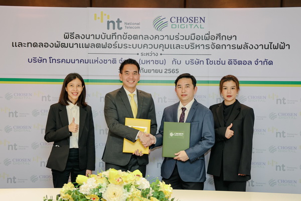 NT ผนึก CHOSEN เดินหน้าดันเทคโนโลยีดิจิทัล สร้างแพลตฟอร์มบริหารพลังงานไฟฟ้า