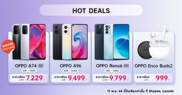พลาดไม่ได้! 11.11 นี้เตรียมตัวให้พร้อม แล้วมาช้อปสมาร์ตโฟนและอุปกรณ์ IoT จาก OPPO ในราคาสุดพิเศษ พร้อมรับของสมนาคุณมากมายที่ OPPO 11.11 Big Deal Ever เฉพาะวันที่ 11 พฤศจิกายน 2565 วันเดียวเท่านั้น ที่ OPPO Official Store บน Shopee และ Lazada