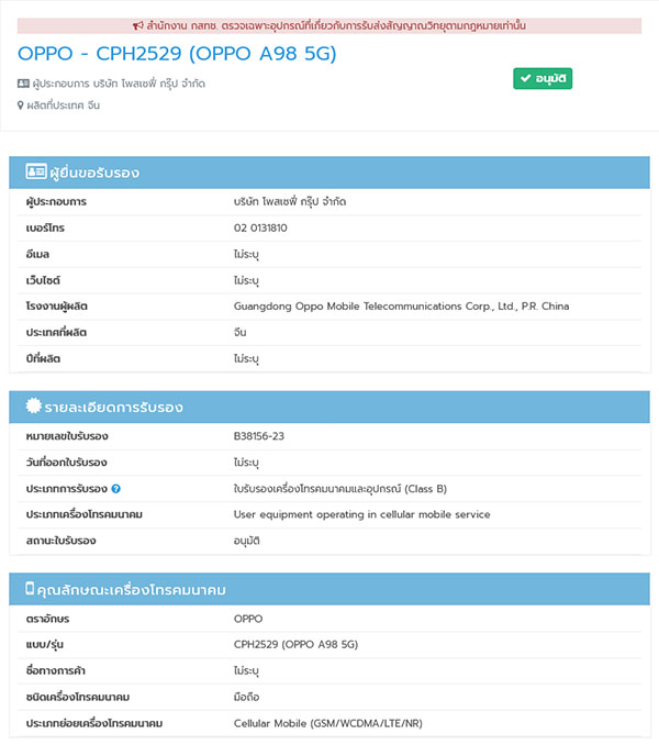 ถึงแม้ว่า OPPO จะเพิ่งจัดอีเวนต์ใหญ่เปิดตัว OPPO FInd N2 Flip ในไทยไปหมาด ๆ แต่ก็ดูเหมือนว่าจะเตรียมจัดงานเปิดตัวกันอีกรอบแล้วในเร็ว ๆ นี้ เมื่อล่าสุดสมาร์ทโฟนระดับกลางบนอย่าง OPPO A98 5G (รหัสโมเดล CPH2529) ได้ผ่านการตรวจสอบจาก กสทช. เรียบร้อยแล้ว