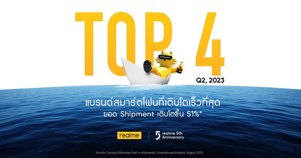 realme ฉลองครบรอบ 5 ปี สร้างปรากฏการณ์ติด Top 4 ในไทย! มาแรงแซงโค้งหลังโต 51% ใน Q2