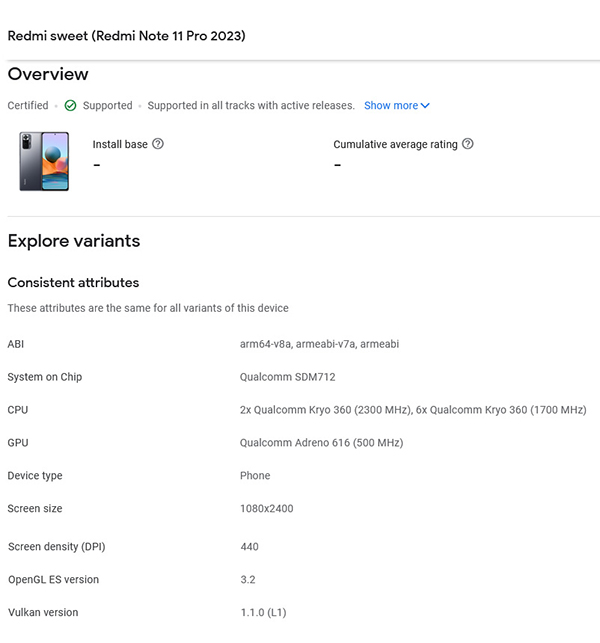 Redmi Note 11 Pro (2023) โผล่บน Google Play Console ใช้ชิป Snapdragon 712 ลุ้นเปิดตัวเร็ว ๆ นี้