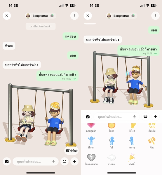 ใน Bondee เราสามารถส่งข้อความแชตกับเพื่อนได้เหมือน Facebook Messenger แต่จะพิเศษกว่าตรงที่จะมีตัวละครของเราและเพื่อนในแชตด้วย ในแชตทั่วไปการแสดงอารมณ์จะทำผ่านการส่งอิโมจิหรือสติกเกอร์ แต่ใน Bondee อารมณ์จะแสดงออกมาที่ตัวละครของเราเลย จึงน่าสนใจกว่า