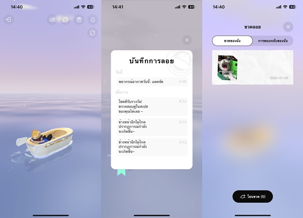 ระหว่างล่องเรือ เราสามารถเขียนข้อความใส่ขวดและลอยออกไป อาจมีใครสักคนได้รับข้อความนี้ ขณะเดียวกันเราก็อาจได้รับข้อความจากขวดของคนอื่นด้วย