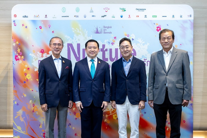 จากซ้ายไปขวา คุณพลภัทร สุวรรณศร ที่ปรึกษาประธานเจ้าหน้าที่บริหาร Advisor to GCEO, คุณฐาปน สิริวัฒนภักดี ประธานกรรมการ ผู้ก่อตั้งมูลนิธิ “บางกอก อาร์ต เบียนนาเล่”, นายเซยุน คิม ประธานบริษัท ไทยซัมซุง อิเลคโทรนิคส์ จำกัด, ศาสตราจารย์ ดร.อภินันท์ โปษยานนท์ ประธานอำนวยการ และผู้อำนวยการศิลป์ “บางกอก อาร์ต เบียนนาเล่”