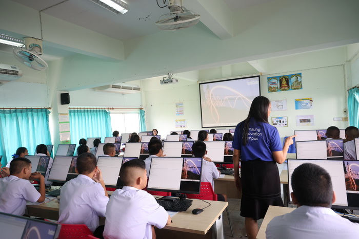 สำหรับแนวคิดหลักในการออกแบบหลักสูตรการเรียนการสอนของโครงการ “Samsung Innovation Campus คือ การนำความรู้ที่ได้ไปใช้จริงในชีวิตประจำวัน เพื่อให้เด็กเปิดใจและสนุกกับการเรียนเทคโนโลยี มีคุณครูเป็นตัวกลางในการเชื่อมต่อและให้ความรู้กับเด็ก ๆ รวมถึงปัจจุบันมีโรงเรียนนำร่องในโครงการแล้วกว่า 10 โรงเรียนทั่วประเทศจาก 6 ภูมิภาค มีการจัดการฝึกอบรมให้กับคุณครู 27 คน และมีจำนวนนักเรียนเข้าร่วมโครงการทั้งในโรงเรียนและออนไลน์รวมกว่า 15,000 คน โดยโรงเรียนวัดคลองสวนฯ สมุทรปราการ เป็นโรงเรียนขยายโอกาสหนึ่งในโรงเรียนนำร่อง ที่ทีมซัมซุงได้ลงพื้นที่ไปส่งต่อโอกาสให้เยาวชน ถือเป็นก้าวสำคัญที่สะท้อนให้เห็นถึงความมุ่งมั่นและความสำเร็จที่เกิดขึ้นจริงของโครงการ ในอนาคตซัมซุงยังมีแผนที่จะพัฒนาหลักสูตรต่าง ๆ ให้สอดคล้องเท่าทันกับการเปลี่ยนแปลงของเทคโนโลยี และเตรียมความพร้อมพื้นฐานให้เด็กอย่างรอบด้านสำหรับการเปลี่ยนแปลงที่จะเกิดขึ้น”