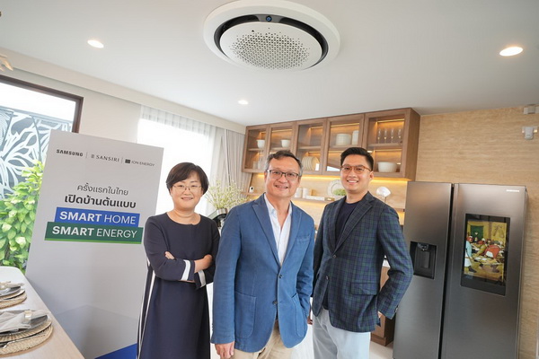 กรุงเทพมหานครฯ, 20 ตุลาคม 2565 - บริษัท ไทยซัมซุง อิเลคโทรนิคส์ จำกัด ผู้นำด้านเทคโนโลยี จับมือ บริษัท แสนสิริ จำกัด (มหาชน) และ บริษัท ไอออน เอนเนอร์ยี่ จำกัด ผู้จัดหาโซลูชั่นพลังงานโซลาร์ครบวงจร ร่วมกันเปิดตัวบ้านต้นแบบ Smart Home Smart Energy ครั้งแรกในประเทศไทย ภายในแนวคิด “Life Can Do More at Home” โดยการนำเอาเทคโนโลยีแอปพลิเคชั่น “SmartThings” อุปกรณ์สมาร์ทโฮมจากซัมซุง ในการเชื่อมต่อบ้านยุคใหม่ให้ชีวิตสมาร์ทกว่าที่เคย รวมถึงการให้ผู้อยู่อาศัยได้ควบคุมและติดตามการใช้พลังงานของเครื่องใช้ไฟฟ้าภายในบ้าน มาผสานกับความต้องการในการเลือกใช้พลังงานสะอาดจากโซล่าร์เซลล์ เพื่อให้ความสำคัญกับการรณรงค์ในเรื่อง Net Zero Emissions โดยบ้านต้นแบบ Smart Home Smart Energy นี้จะนำมาเพื่อยกระดับการใช้ชีวิตให้เป็นมากกว่าที่อยู่อาศัย ตอบโจทย์ความสะดวกสบายทุกไลฟ์สไตล์ของทุกคนในครอบครัว ไม่ว่าจะอยู่ในพื้นที่ใดของบ้าน