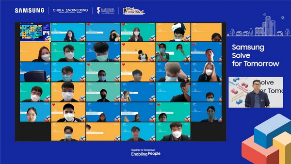 ล่าสุดจัดกิจกรรมเวิร์คชอปออนไลน์ ติดอาวุธ Design Thinking (การคิดเชิงออกแบบ) และ IoT & Automation ณ ห้อง I-SCALE ชั้น 4 อาคารวิศวกรรมศาสตร์ 100 ปี จุฬาลงกรณ์มหาวิทยาลัย โดยโครงการนี้เป็นการเชิญชวนเยาวชนที่กำลังศึกษาในระดับชั้นมัธยมปีที่ 4 – 5 และระดับประกาศนียบัตรวิชาชีพ ชั้นปีที่ 1 – 2 ร่วมประกวดออกแบบนวัตกรรม ภายใต้หัวข้อ “Innovation for Sustainable Communities, Good Health and Well-being” ในการนำเสนอโซลูชันเพื่อพัฒนาสังคมให้ดีขึ้นอย่างยั่งยืน ซึ่งในรอบแรกจะคัดเลือก 20 ทีม จาก 308 ทีม เพื่อเข้าร่วมเวิร์คชอปกับผู้เชี่ยวชาญ พร้อมรับเงินทุนสนับสนุน 5,000 บาท เพื่อเป็นทุนในการพัฒนาโครงการ และจะประกาศผลให้เหลือเพียง 10 ทีม ในวันที่ 11 ตุลาคม 2565 นี้ เพื่อผ่านเข้าสู่รอบชิงชนะเลิศต่อไป สำหรับ 3 ทีมที่ชนะเลิศ จะได้รับเงินสนับสนุนในการพัฒนาโซลูชันต้นแบบ (Prototype) รวมถึงเงินรางวัลและแท็บเล็ตซัมซุง มูลค่ารวมกว่า 900,000 บาท