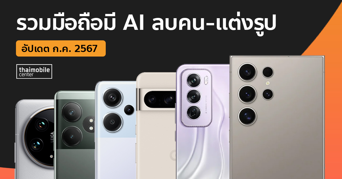 รวมมือถือมี AI ลบคนในภาพถ่าย มีขายในไทยตอนนี้ อัปเดตล่าสุด ก.ค. 2024