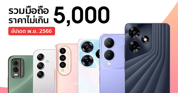 รวมมือถือราคาไม่เกิน 5,000 บาท อัปเดต พฤศจิกายน 2566