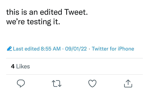 ฟีเจอร์แก้ไขข้อความยังคงอยู่ในช่วงทดสอบ โดยจะปล่อยให้ผู้ใช้กลุ่มเล็ก ๆ ได้ทดลองใช้งานกันก่อน เพื่อรวบรวมฟีดแบ็ค และรอดูปัญหาที่อาจเกิดขึ้น รวมไปถึงติดตามการใช้งานฟีเจอร์นี้แบบผิด ๆ ด้วย หลังจากนั้นจะเปิดให้ผู้ใช้ Twitter Blue ที่จ่ายค่าสมาชิกรายเดือนได้ใช้งานกันภายในเดือนกันยายนนี้