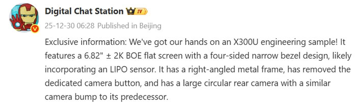 vivo X300 Ultra หลุดสเปกจอ 6.82 นิ้ว พร้อมตัดปุ่ม Action (ปุ่มกล้อง) ออก