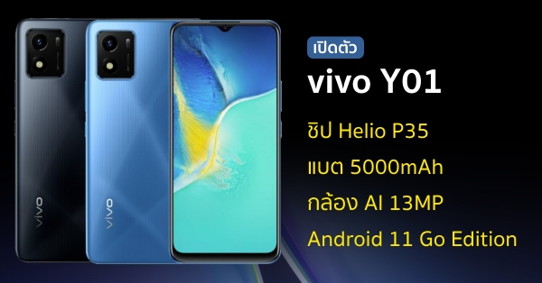 เปิดตัว vivo Y01 สมาร์ทโฟนรุ่นเล็กสเปกครบเครื่อง มาพร้อมแบต 5000mAh, ชิป Helio P35 และกล้อง AI 13MP