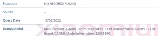 Xiaomiui รายงานการค้นพบเบาะแสของ Xiaomi 12 Lite ในฐานข้อมูล IMEI โดยเป็นอุปกรณ์รหัส 2203129G โค้ดเนม taoyao หรือ L9 ซึ่งเป็นเครื่องยืนยันว่า Xiaomi 12 Lite มีตัวตนอยู่จริง และจะเปิดตัวในเร็ว ๆ นี้แน่นอน