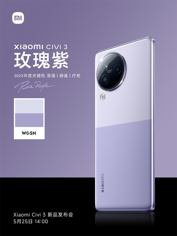 Xiaomi ยืนยันวันเปิดตัวสมาร์ทโฟน Xiaomi Civi 3 เป็นวันที่ 25 พฤษภาคมนี้ พร้อมเผยภาพตัวเครื่อง 4 สี Rose Purple, Adventure Gold, Mint Green และ Coconut Gray