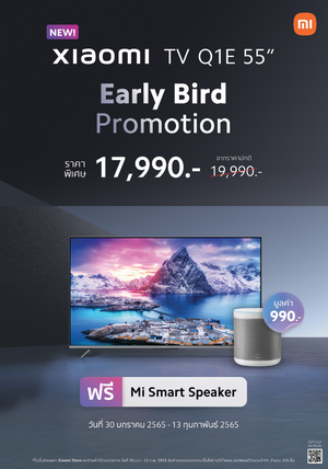 เมื่อซื้อระหว่าง 30 มกราคม – 13 กุมภาพันธ์ 2565 ราคาพิเศษ 17,990 บาท พร้อมรับ Mi Smart Speaker มูลค่า 990 บาท ฟรี |