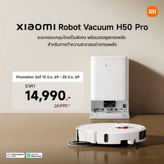 หุ่นยนต์ดูดฝุ่น Xiaomi Robot Vacuum H50 วางจำหน่ายในราคาพิเศษ 10,990 บาท2 (จากราคาปกติ 19,990 บาท) ตั้งแต่วันนี้ ถึง 25 มีนาคม 2569 ที่ Xiaomi Store และร้านตัวแทนจำหน่ายที่ร่วมรายการทั่วประเทศ รวมถึงช่องทางการจัดจำหน่ายทางออนไลน์แพลตฟอร์ม2 พิเศษ! เมื่อซื้อสินค้าตั้งแต่วันนี้ ถึง 25 มีนาคม 2569 ผ่านช่องทาง mi.com และ Lazada3 สามารถซื้อได้ในราคาพิเศษยิ่งกว่า 10,490 บาท2 (คูปองมีจำนวนจำกัด 200 ใบแรกเท่านั้น แจกตามลำดับผู้ที่ซื้อสินค้า First come, first served)3