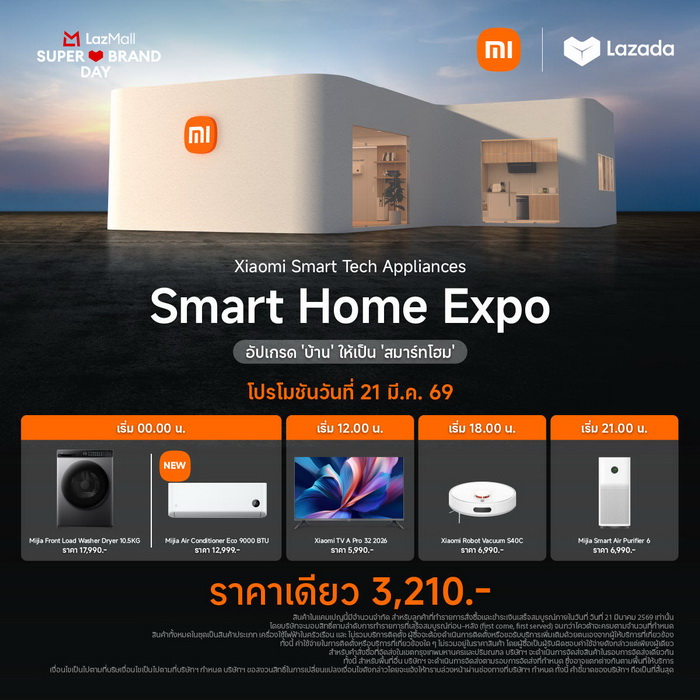 เสียวหมี่จัดหนักจัดเต็ม ยกทัพเครื่องใช้ไฟฟ้าอัจฉริยะ จัดนิทรรศการ Xiaomi Smart Home Expo - อัปเกรด 'บ้าน' ให้เป็น 'สมาร์ทโฮม' ในระหว่างวันที่ 20 มี.ค. - 5 เม.ย. 69 ที่ศูนย์การค้าเมกาบางนา พร้อมแจกดีลสุดพิเศษมากมาย