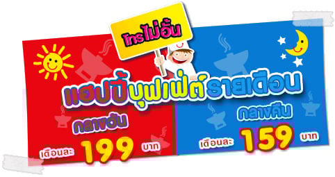 | ลูกค้าปัจจุบัน ค่าธรรมเนียมในการเปลี่ยนโปรโมชั่น ครั้งละ 159 บาท |