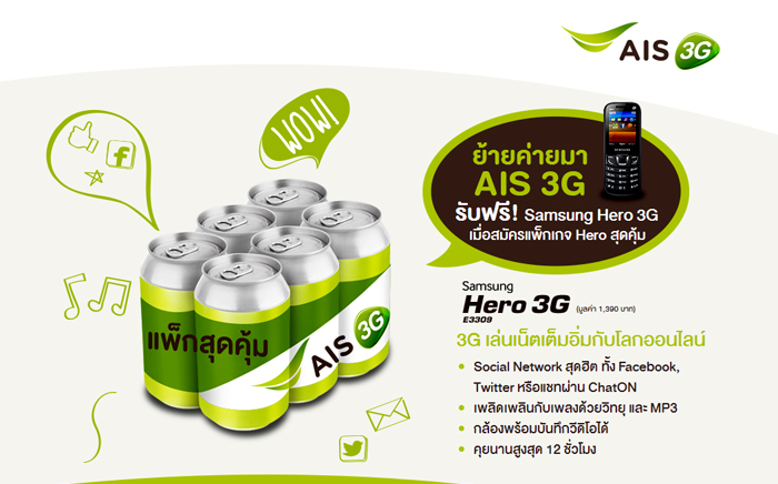 ตอนนี้คุณอยู่ที่ >> หน้าแรก >> Catalog โปรโมชั่นมือถือ >> หน้ารายละเอียด โปรโมชั่น แพ็กเกจสุดคุ้ม ย้ายค่ายมา AIS 3G รับฟรี Samsung Hero 3G ( AIS : เอไอเอส )